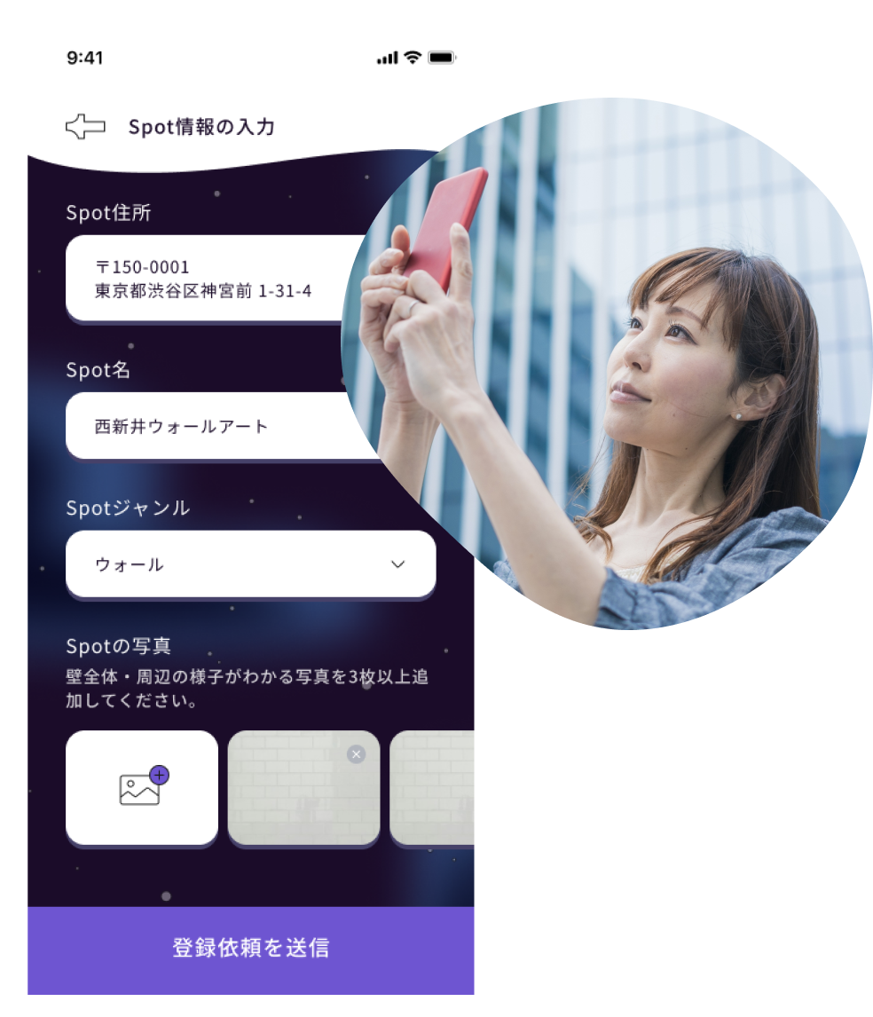 Commuralパートナーショップを見つけるだけでなく、自分でスポットを申請して、新しい体験の場を作ることもできます!